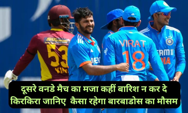 Barbados Weather Forecast:भारत और वेस्टइंडीज के बीच तीन मैचों की वनडे सीरीज का दूसरा मैच आज बारबाडोस के केंसिंग्टन ओवल में खेला जाना है।