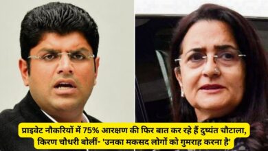 Haryana Private Job Reservation: प्राइवेट नौकरियों में 75% आरक्षण की फिर बात कर रहे हैं दुष्यंत चौटाला, किरण चौधरी बोलीं- ‘उनका मकसद लोगों को गुमराह करना है’