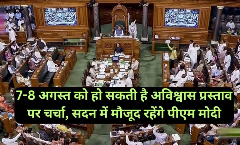 लोकसभा में विपक्षी गठबंधन की ओर से लाए गए अविश्वास प्रस्ताव पर 7-8 अगस्त को बहस हो सकती है