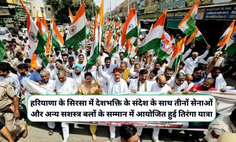 Sirsa News : हरियाणा के सिरसा में देशभक्ति के संदेश के साथ तीनों सेनाओं और अन्य सशस्त्र बलों के सम्मान में आयोजित हुई तिरंगा यात्रा