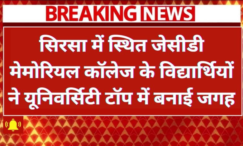 Sirsa News : सिरसा में स्थित जेसीडी मेमोरियल कॉलेज के विद्यार्थियों ने यूनिवर्सिटी टॉप में बनाई जगह, जेसीडी मेमोरियल कॉलेज के 10 विद्यार्थियों ने विश्वविद्यालय के टॉप छह में बनाई जगह